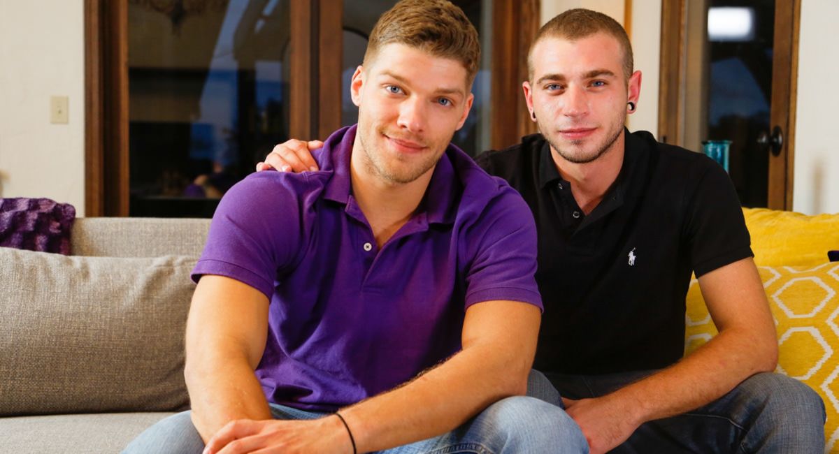 Undressing, Alex guides Bridger, kissing up his body and then watching as Bridger goes down on him, wrapping his lips around Alex's hard cock while he strokes himself off. Bridger seems to be increasingly more comfortable with the proceedings, so Alex mounts his friend and rides him, bouncing up and down on Bridger's virgin cock, as Bridger closes his eyes and takes in the sensation.